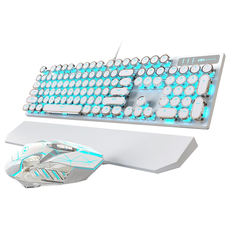 - Retro Typewriter Style Keyboard Mouse Combo: It's a cute and functional white keyboard mouse set, plating punk rounded keycaps make typing enjoyable funny, just like a typewriter.