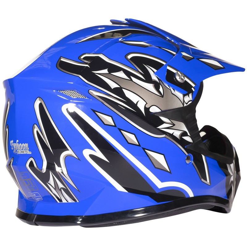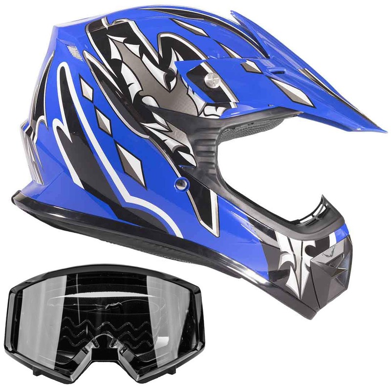 Typhoon Youth Off Road Helmet & Goggles DOT Motocross ATV Dirt Bike MX Motorcycle Blue Black, Large