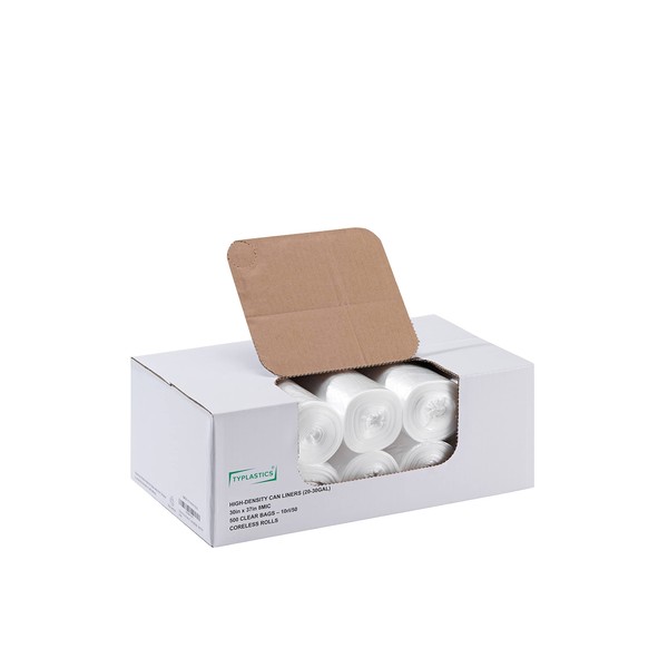 TYPLASTICS 20-30 Gallon Clear Trash Can Liners - 30" x 37" - High Density Garbage Bags - Case of 500 - Multipurpose for Office, Outdoor, Recycling, Industrial and Commercial