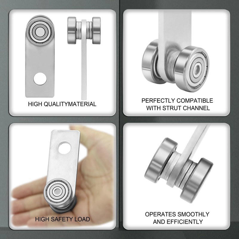 - ✔️【Trolleys Size】Steel plate hole diameter-9/16”(14mm); thickness-1/4”(6mm).For use with 1-5/8" Wide and All 1-5/8" or Taller Strut Channel.