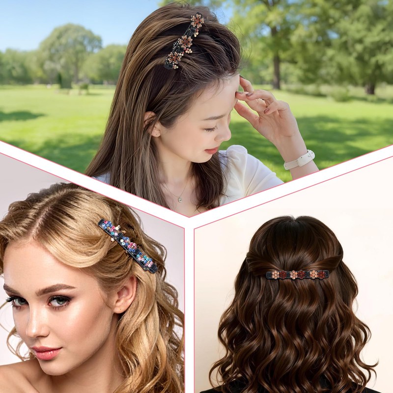 - Kristall-stein geflochtene haarspangen: Die kristall-stein geflochtene haarspangen sind mit drei kleinen clips ausgestattet, die vielseitige styling-möglichkeiten bieten. Ideal zum flechten und gestalten kreativer frisuren oder zum bändigen unordentlicher haare.