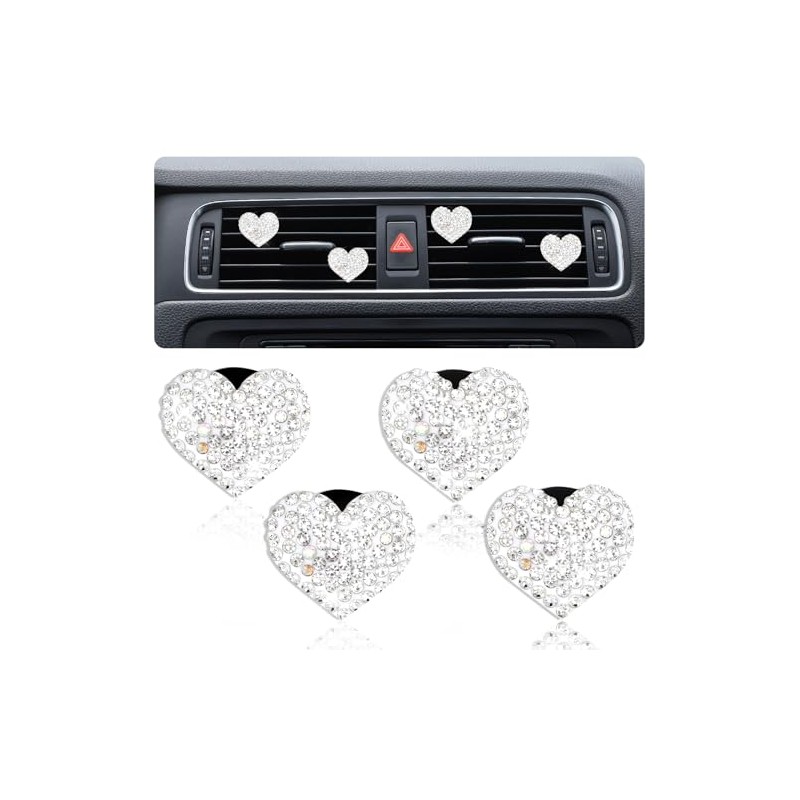 - Heart-Shaped Design: The crystal design is a sparkling and unique car accessory, and it fits all car vents. The heart-shaped design is cute and charming, which attracts more attention, with a sparkling rhinestone surface, which can decorate your car's air conditioning vents very well