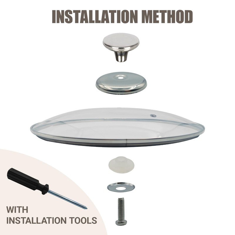 - Pan Lid Size: Outer diameter 273mm/10.75inches, inner diameter 257mm/10.12inches, suitable for all 10.5-inch pots, please confirm the size of your pot before ordering. Our pan lid is universal lids for pots, pans and skillets. We provide all accessories and installation tools for easy installation.