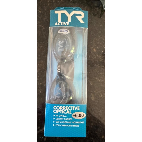 TYR Corrective Optical Swim Goggles -6.00 SMOKE Lens Durafit Adjustable NEW