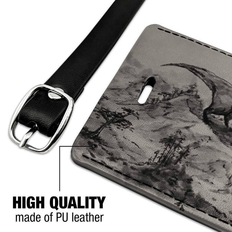 • QUALITY MATERIAL: Our stylish tag is crafted with a leather backing and strap, and a durable PU front. The featured design is displayed on one side, with a slip pocket on the other. Includes contact information card. Approximately 2.8" (7.1cm) x 4.5" (11.4cm) in size.