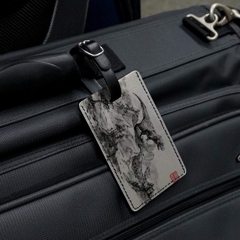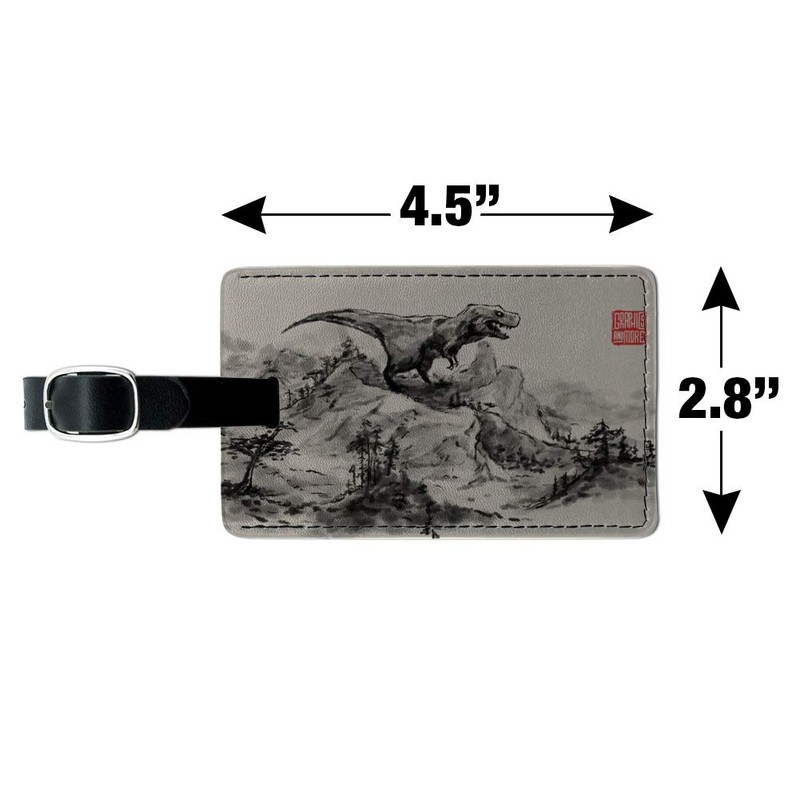 Tyrannosaurus Rex in Chinese Ink Paint Rectangle Leather Luggage Card ID Tag