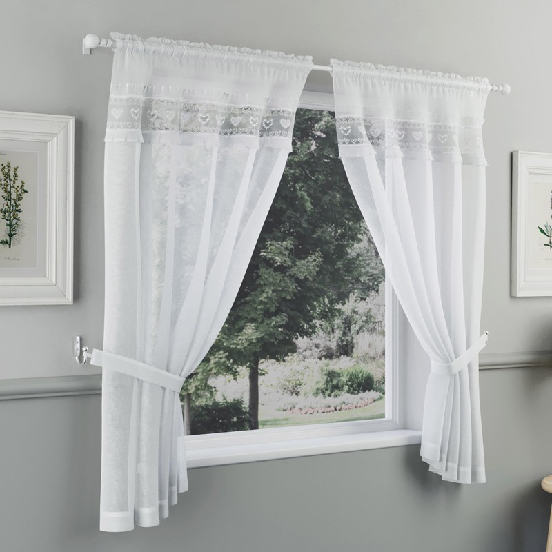 - WINDOW PANELS - Each set includes 2 heart embroidered panel curtains, both measuring 140cm wide and available in 4 different drop lengths, as well as 2 matching tie backs, ensuring a cohesive and refined window dressing experience. Featuring a user-friendly rod pocket header for easy installation.