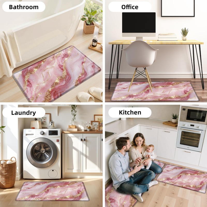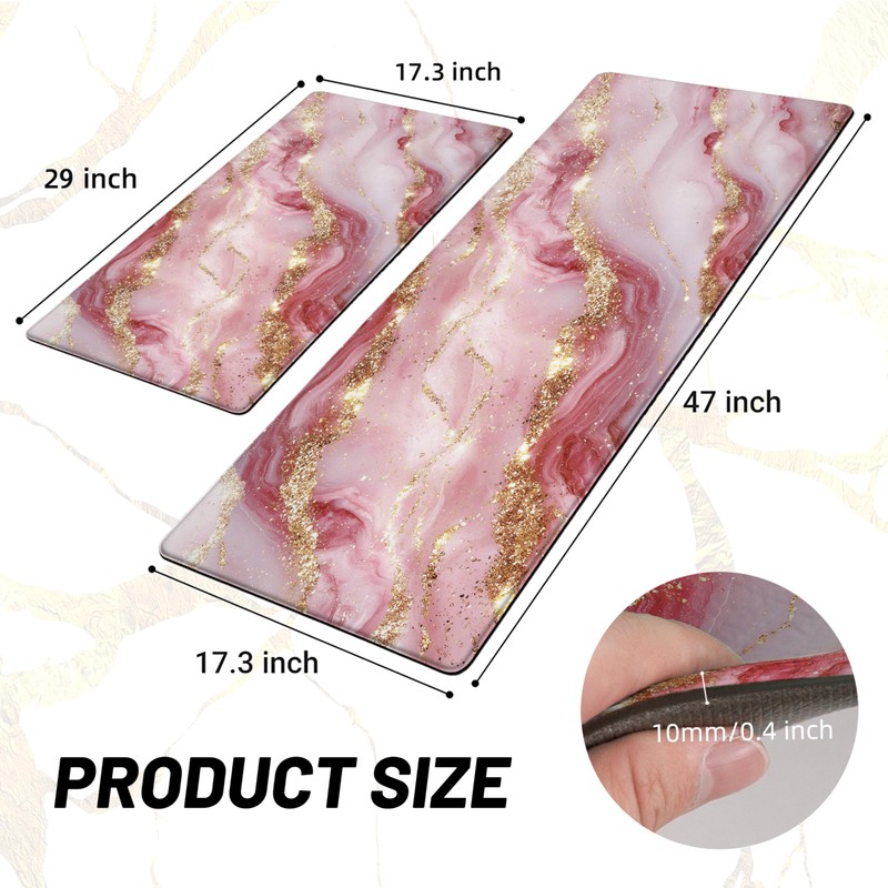 Tyrot Gold Pink Kitchen Mats for Floor 2 Pcs Modern Marble Anti Fatigue Mats for Kitchen Floor Mat PVC Non Slip Waterproof Kitchen Rugs for Kitchen Floor Sink Office Laundry 17.3"X28"+17.3"X47"