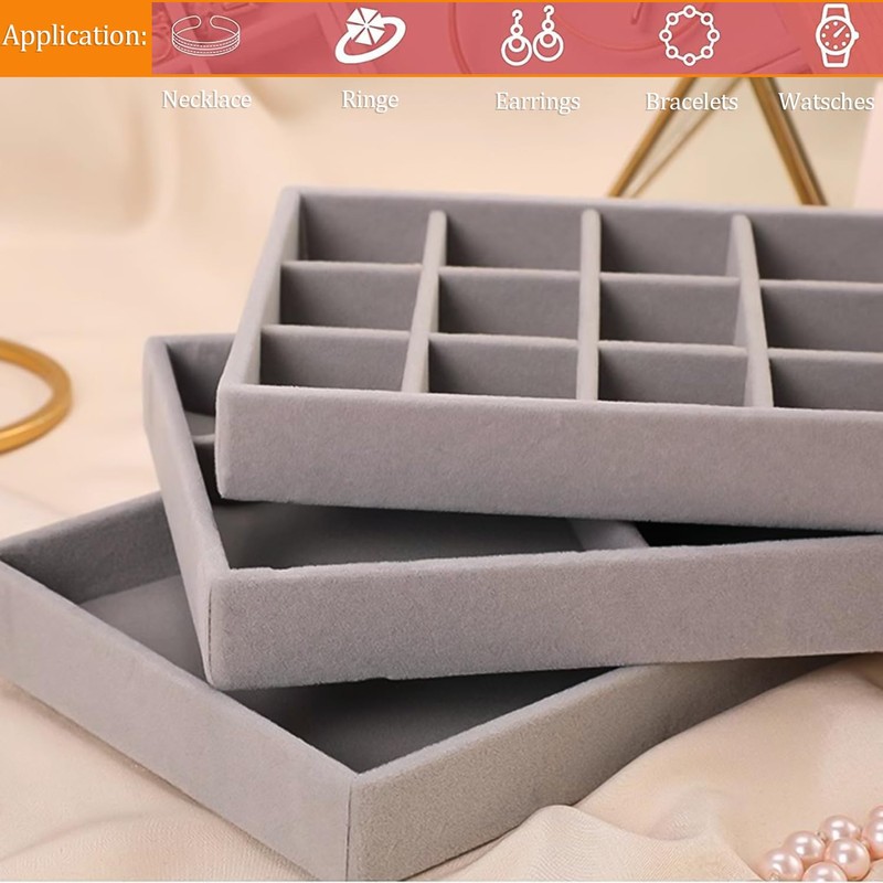 - High-quality material: the jewellery tray is made of high-quality grey velvet and high-density cardboard, durable and delicate, not easy to damage. The soft material can effectively protect your jewellery from scratches, soft to the touch and moisture-resistant, tangles and other damage.