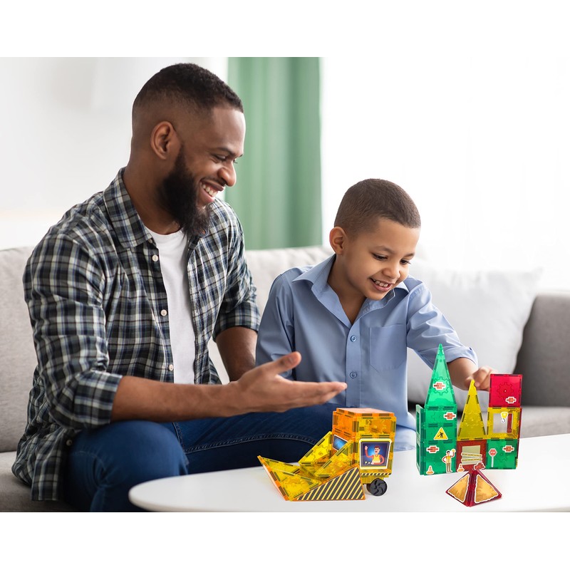 Tytan Tiles Construction Site & Trucks 60-Piece Magnetic Tiles Building Set, Fun Kids’ STEM Toy, Creative Play, Shape & Pattern Recognition, Fine Motor Skills, Includes Storage Bag, Ages 3 and Up