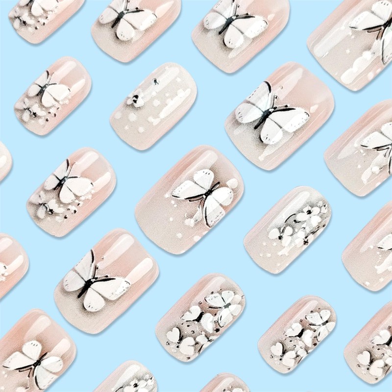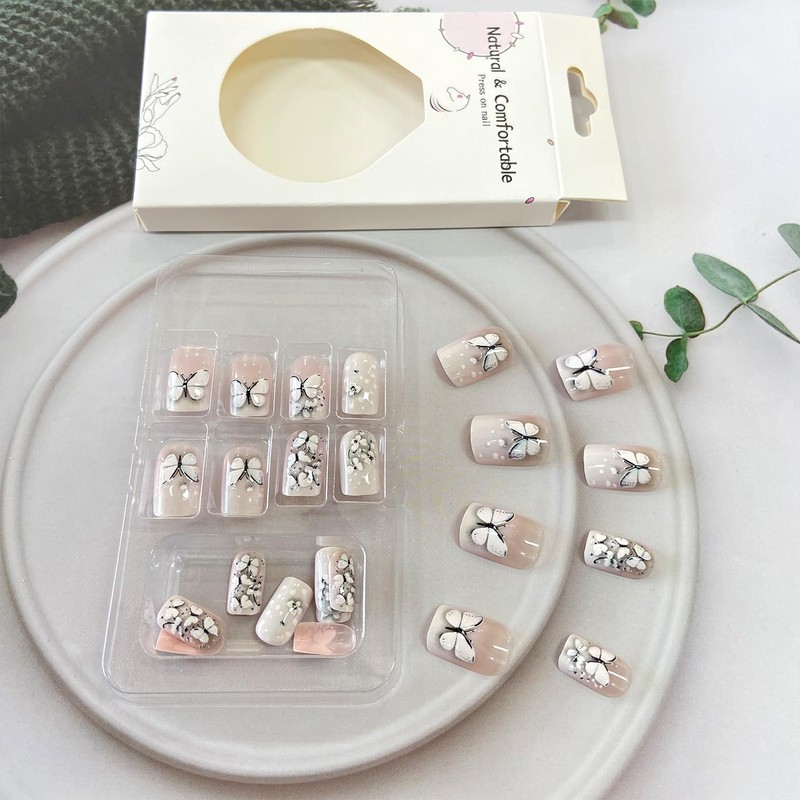 - Easy to Use: Choose the suitable white 3d butterfly fake nails, polish the nail bed, paste the jelly glue we give you, press the fashion nail art in 30 seconds, and create the nail art that girls like,If the size is not suitable, it can be polished to the size of the nail cap with a friction tool.