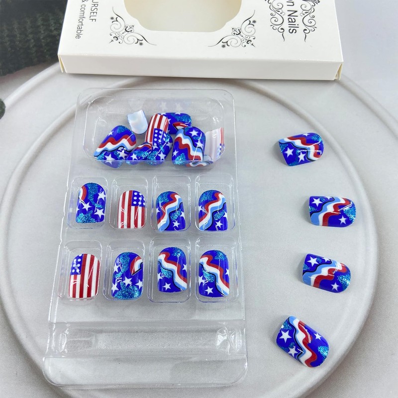 - Easy to Use: Choose the suitable American fourth of July fake nails, polish the nail bed, paste the jelly glue we give you, press the fashion nail art in 30 seconds, and create the nail art that girls like,If the size is not suitable, it can be polished to the size of the nail cap with a friction tool