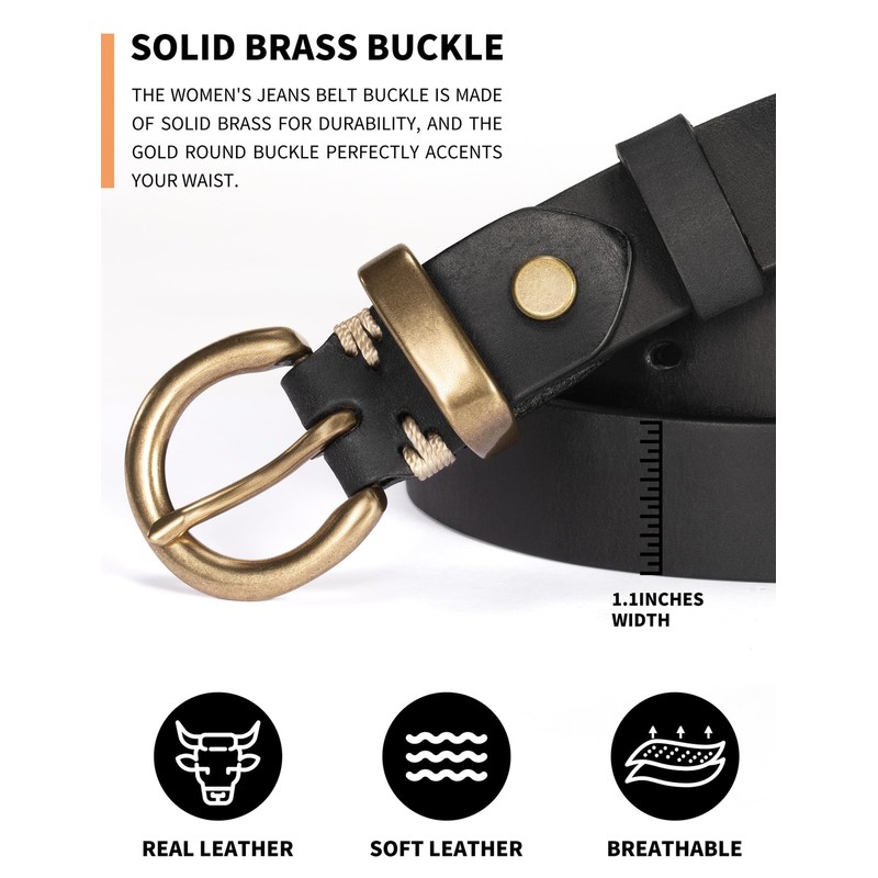 - Accesorio versátil: con herrajes de latón macizo, este cinturón para mujer combina perfectamente con jeans, pantalones cortos o faldas, añadiendo un toque final audaz a cualquier atuendo.