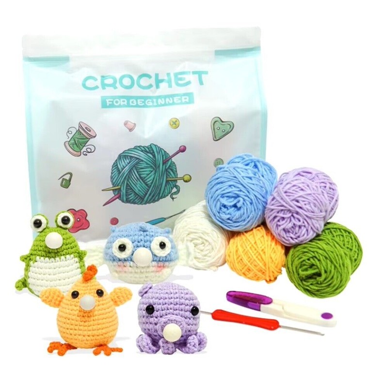 Tyzon 4 Pcs DIY Puff Bubble Animal Crochet Kit-Beginner Knitting Set w Video Tutorial