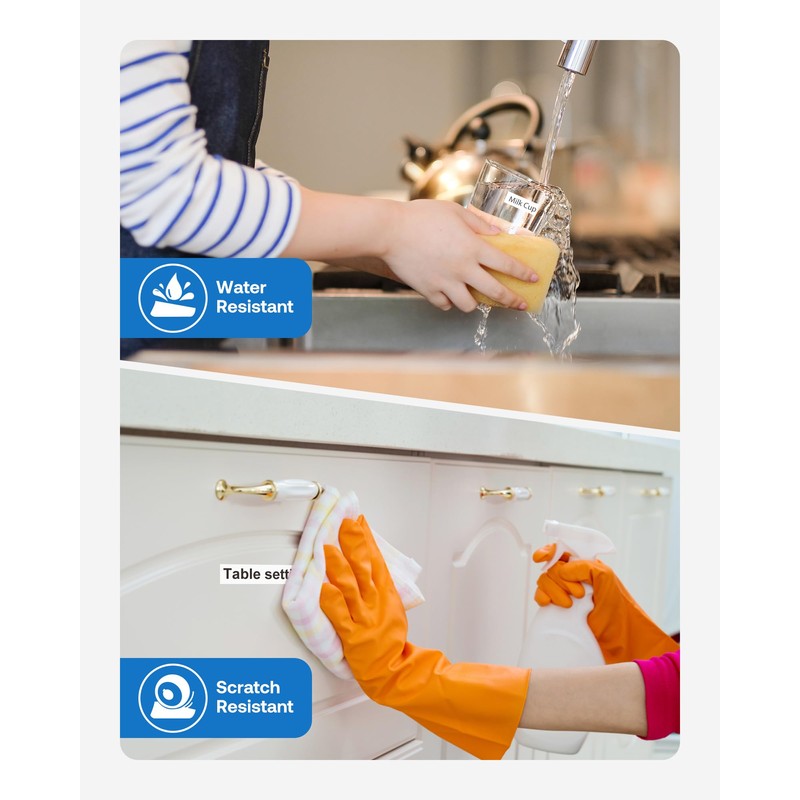 - Perfect label: TZe tape can be used for home, commercial or industrial applications. Especially shelves and supply cabinets, and can be used in refrigerators, microwaves and dishwashers.