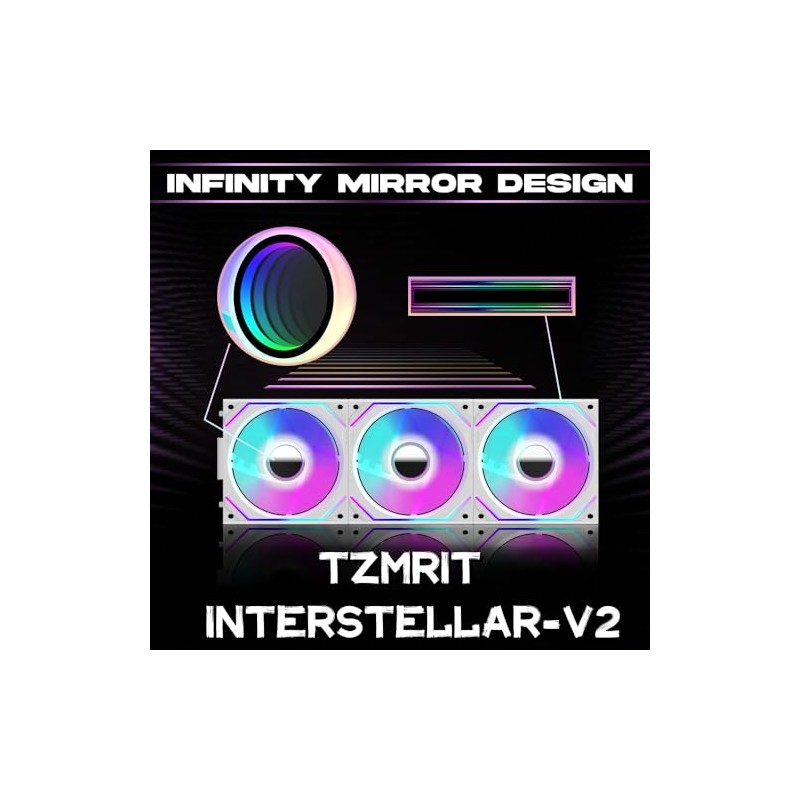 TZMRIT TZMRIT Interstellar-V2 Uni Fan White, Infinity Fan 120mm, Rgb Fan 120mm, PWM ARGB Fan 120mm, Triple Pack