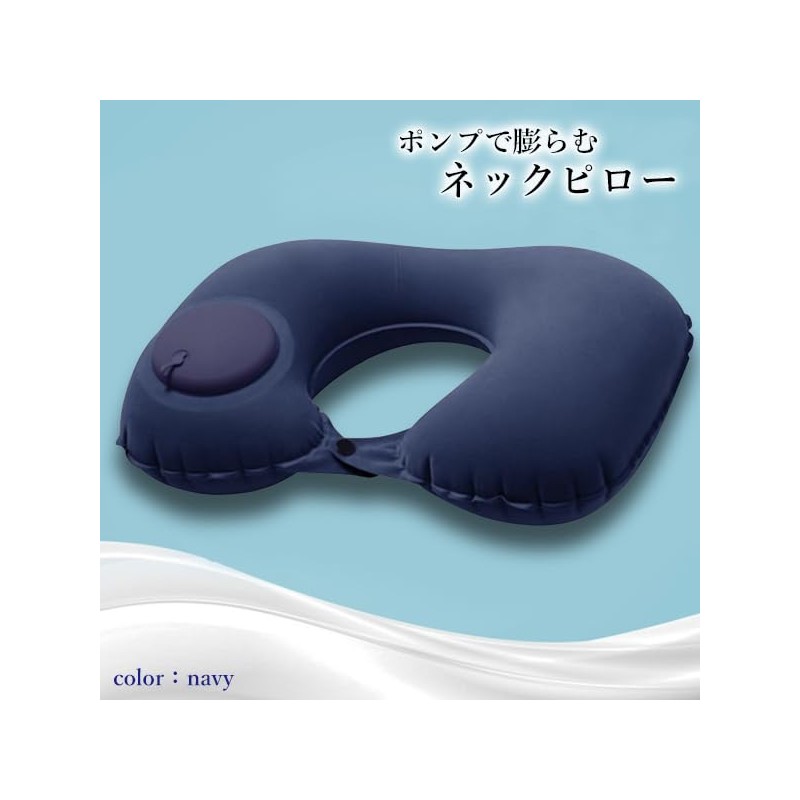 ネックピロー 首枕 飛行機 エアー ポンプ式 コンパクト 旅行 車 移動 クッション トラベルピロー ネックエアー エアーピロー U字型 ネイビー