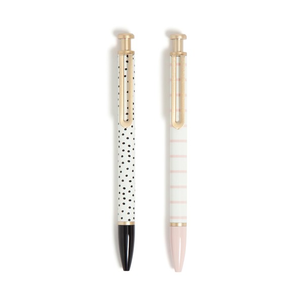 U Brands Monterey Ballpoint Pens, Set of 2, Stripes And Dots With Gold Details, Bold (1.0 mm) Point, Black Ink