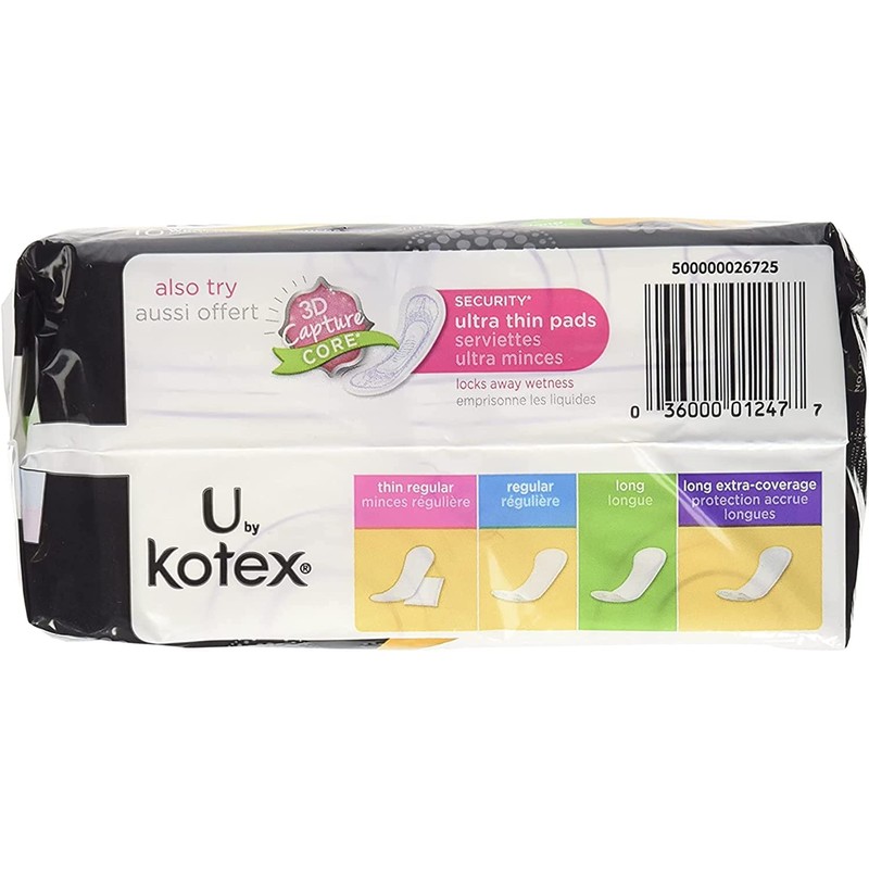 - U by kotex light days absorbent long pantiliners give more coverage in the front and back and are individually wrapped for on-the-go use
