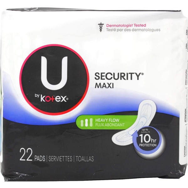 U by Kotex Security Maxi Pads, Long Super, 22 Count (Pack of 3)