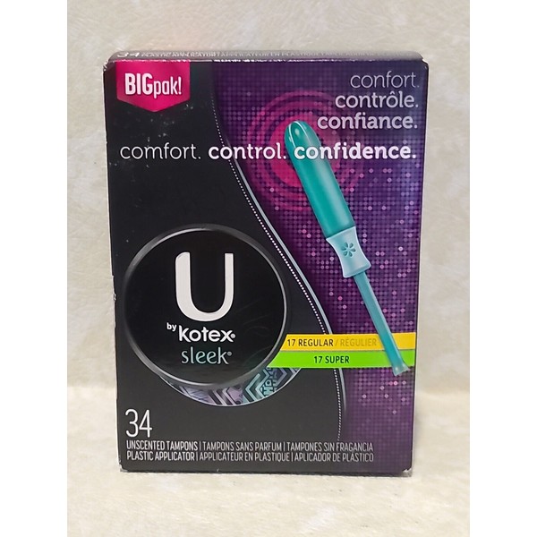 U by KOTEX Sleek • 34 UNSCENTED TAMPONS ( 17 REGULAR/ 17 SUPER )