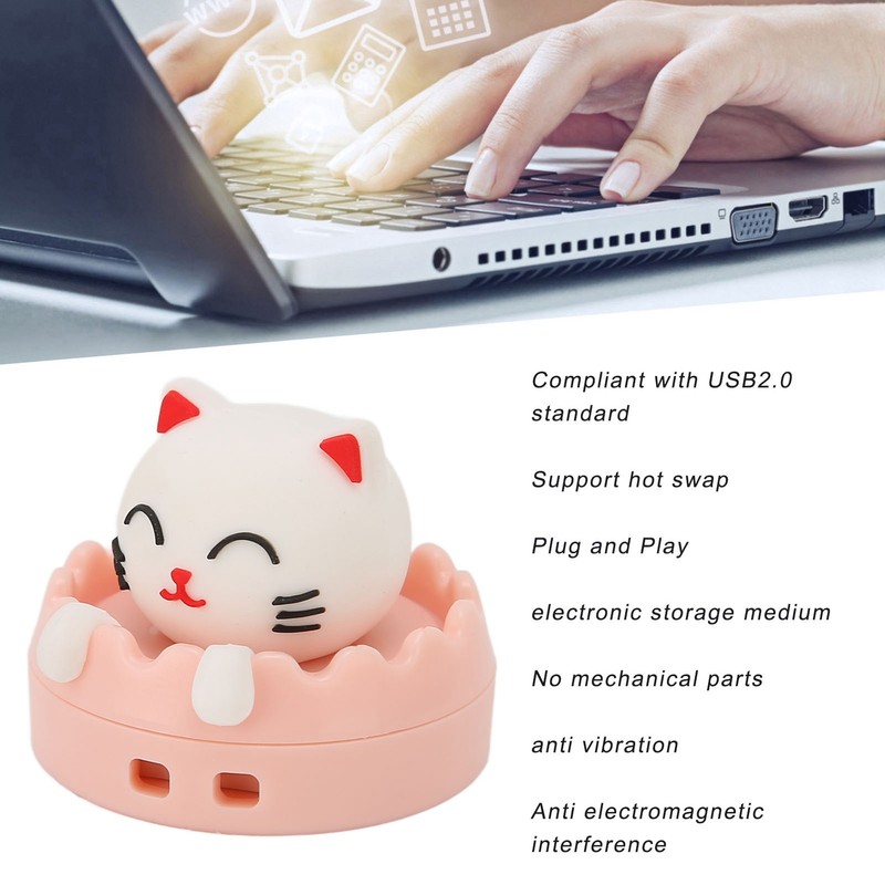 U DISK USB2.0 Interface Hot Swap Cat Cartoon Style Portable Vibration Resistant Flash Drive for Backup Files(Cat Circle Buckle 64GB)