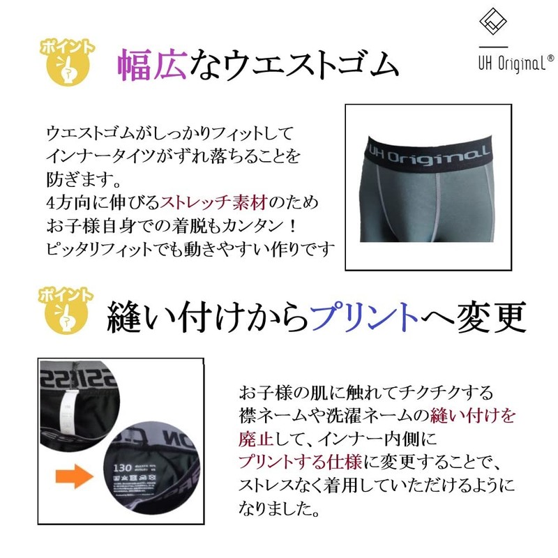 - Use as a compression inner for children to play sports and training. It also has a recovery effect from studies that have been proven to support muscles and improve performance and recovery for muscle injury