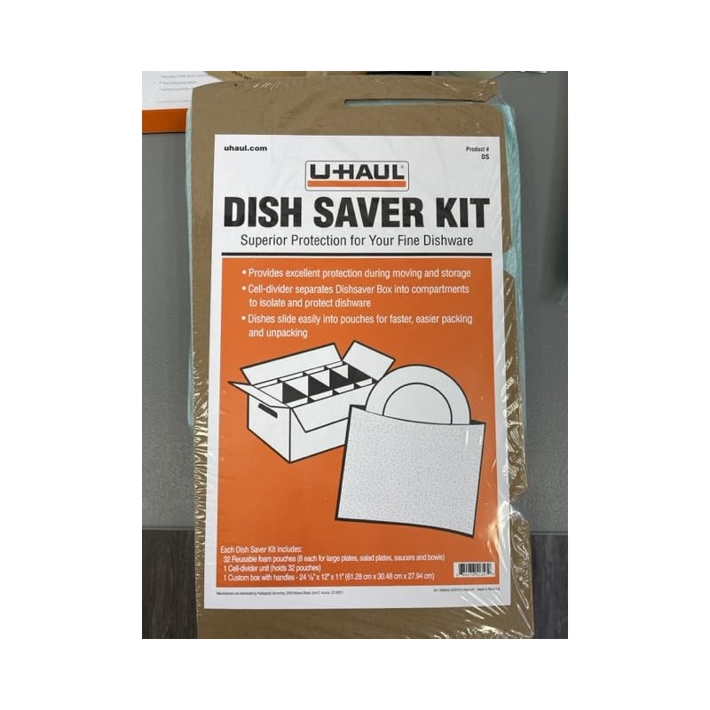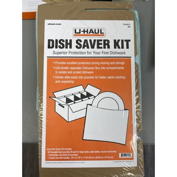 U-Haul Dish Packing Kit – for Dishes and Glassware – Includes 1 Box, 1 Cell Divider Unit, and 32 Assorted Foam Pouches