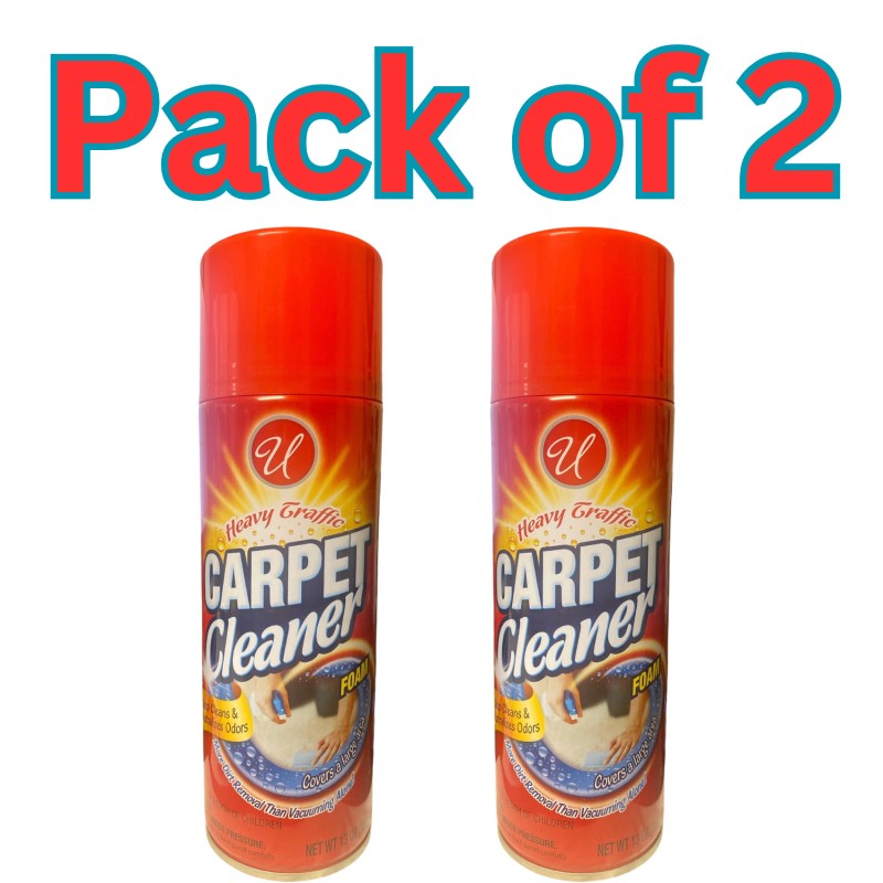 U Heavy Traffic Carpet Cleaner Foam is designed to tackle dirt, grime, and odors in high-traffic areas of your home. This powerful foam cleaner safely cleans carpets, neutralizes odors, and leaves your floors looking fresh. Ideal for use on wool, nylon, and stain-resistant carpets, it can also be easily wiped off wood furniture if accidentally sprayed. The cleaner is simple to use, providing more dirt removal than vacuuming alone. It's the perfect solution for keeping your carpets looking clean and smelling fresh.