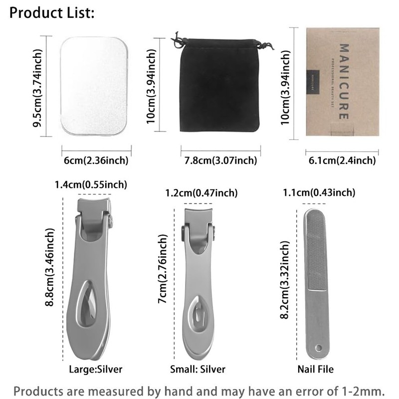 - 【3-Piece Set for All Needs】 Includes 1pcs large (3.46inch) .1pcs small (2.76inch) clippers and 1pcs Nail File . Durable, portable, and perfect for home, travel, or salon use.