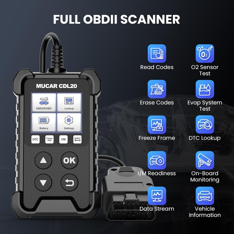 - Escáner OBD2 completo: práctico lector de código U MUCAR CDL20 OBD2 multifunciones para coches compatible con los 10 modos de obd2. Códigos de lectura, códigos de borrado, luz indicadora de falla MIL, datos en vivo, prueba de sistema EVAP, prueba de monitor a bordo, ver marco de congelación, información del vehículo, preparación I/M, búsqueda de código DTC. La herramienta de diagnóstico para automóviles puede ayudarte a detectar cualquier problema potencial del motor y evitar costos excesivos por reparaciones innecesarias.