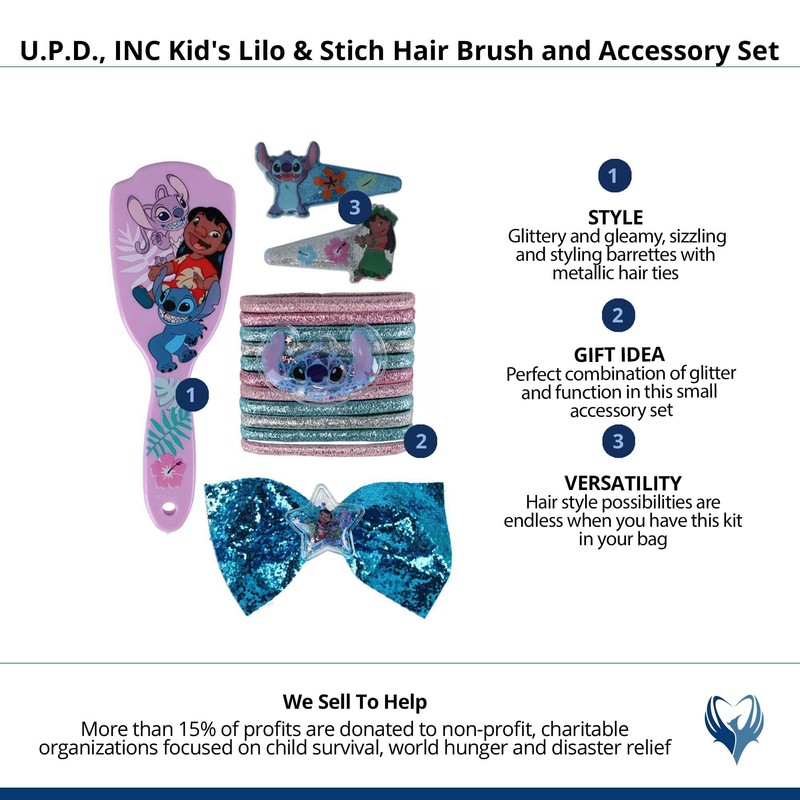 U.P.D., INC Kid's Lilo & Stich Hair Brush and Accessory Set, Pink, One Size