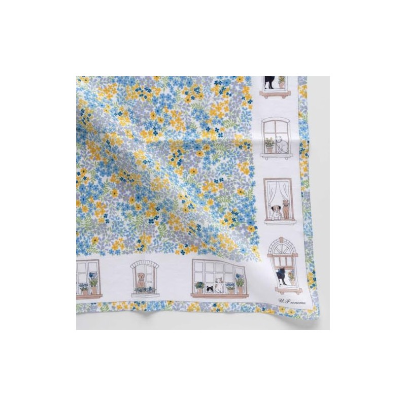- U.P renoma: A cute pattern that makes cute pets look at their faces from the window of Apartman in Paris. Made with gauze fabric, this large 22.8 inches (58 cm), so it can be used as a neck wrap or as a throw. Designed with a motif of "Paris Cityscape" and "Paris Sweets" that symbolize the brand's personality. Lavender and caramel beige are key colors