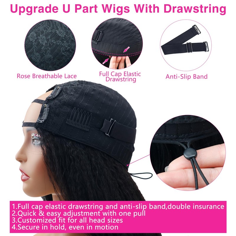 - 【U Part Wigs Human Hair With Drawstring】After the upgrade, the U-shaped wig has been improved, and the built-in drawstring makes the wig more suitable for our head size, which is very safe and will not fall off, and is suitable for women who have sports fitness or outdoor activities.