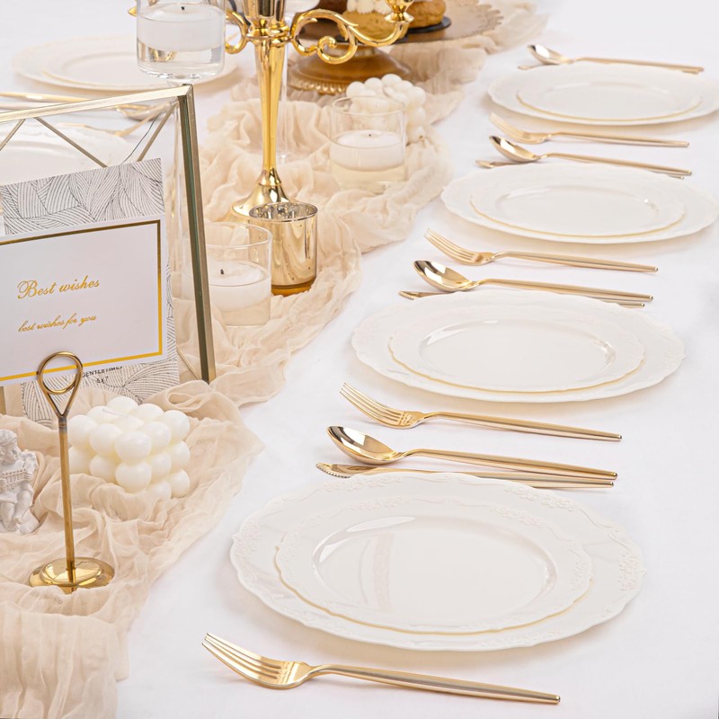 - Designed For All Occasions: These ivory plastic plates disposable are perfect for any occasion. Whether it's weddings, parties, birthday celebrations, anniversaries, Christmas parties, baby or bridal showers, or other occasions such as fine dining, company parties, family dinners. With elegant colors and durable materials, they can truly make a difference in the dining experience, adding luxury and glamour to any event.