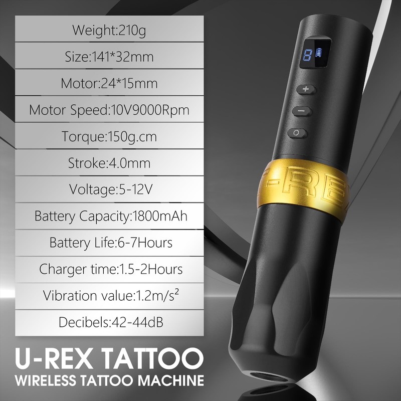 U-REX Wireless Tattoo Gun with 1800mAh Tattoo Battery Rotary Tattoo Pen Machine Digital LED Display for Tattoo Artists
