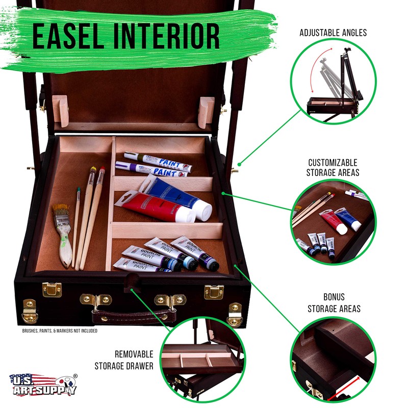 - Storage sketchbox is divided into a 4 compartment interior with 3 removable dividing slats for adjusting compartment sizes, plus a bonus storage area below the drawer. Store and organize sketch pads, paints, brushes, markers, pens, paper and other essential art supplies. It's deal for keeping yourself organized while painting, drawing and sketching.