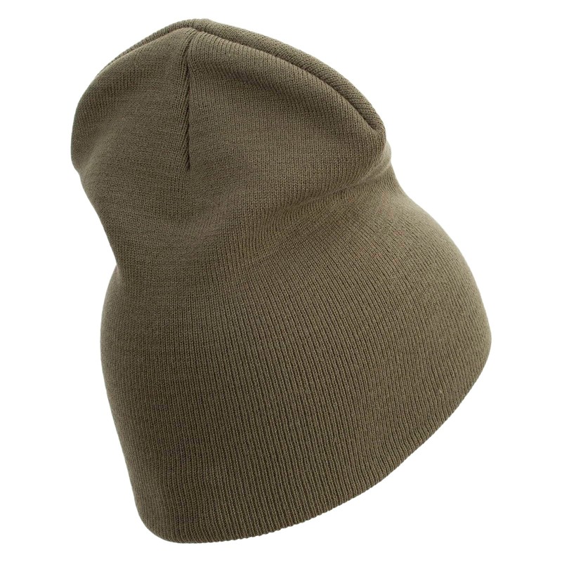 U.S. Marine Corps 1st Marine Division Symbol Embroidered 8 Inch Solid Knit Short Beanie Made in USA - Olive OSFM