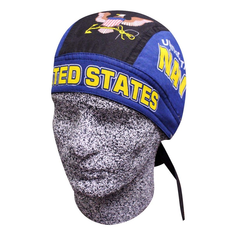 U.S. Navy Skull Cap Blue Bandana with Sweatband Adjustable Self Tie