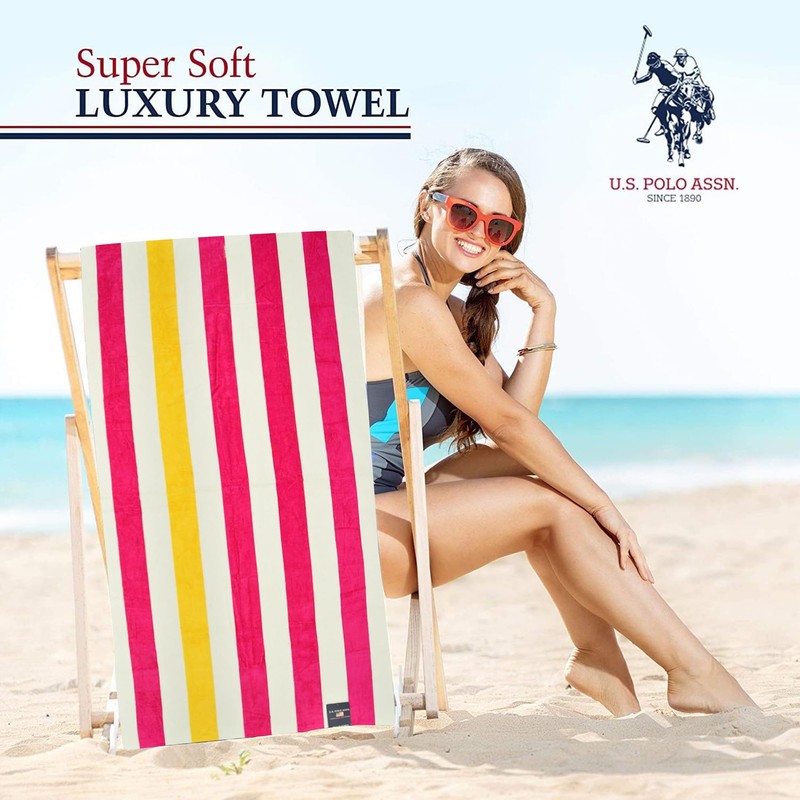 U.S. POLO ASSN. Oversized (40” x 70”) Striped Nautical Design Beach Towel - Luxury Plush Cotton Hotel Quality for Bath, Pool - Cabana Stripe Fuchsia/Yellow