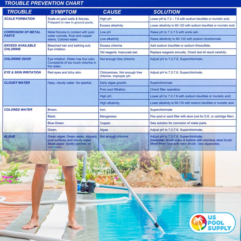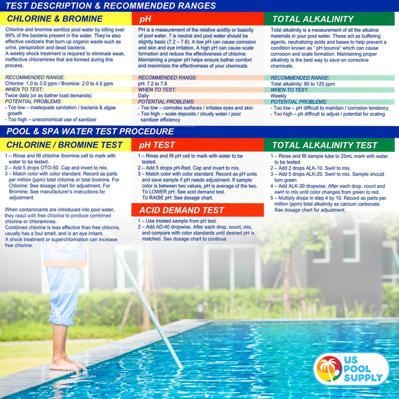 - Easy to use testing kit that makes it easier for you to maintain your pool waters chemical levels, so the water is properly balanced and safe to enjoy and swim in year-round!