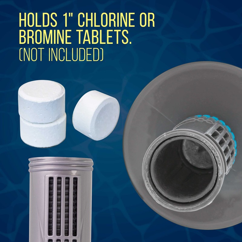 • Professional Grade: Heavy-duty weighted floating spa, hot tub, and small pool chlorine and bromine chemical dispenser. It holds 1" chlorine or bromine tablets.