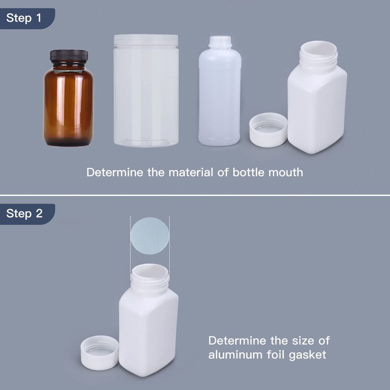 It is necessary to prepare an electromagnetic induction sealing machine. Insert the aluminum foil gasket into the bottle cap, and place the aluminum foil silver side outward. Then put the cap on the bottle mouth and tighten it. Align the center of the sensing head with the center of the bottle cap as much as possible, and tap the button switch for about 2 seconds. After opening the bottle cap, aluminum foil, and paper are separated, silver tinfoil is separated and bonded to the bottle mouth, and a white paper pad is left on the bottle cap.