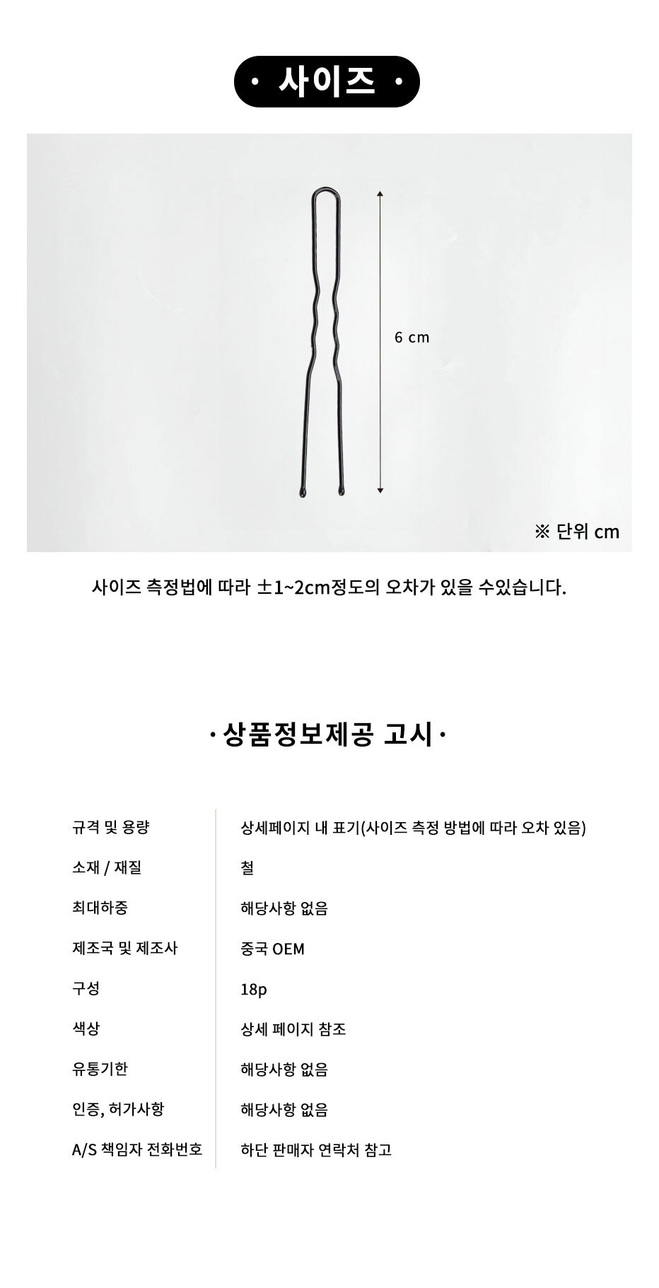 U-shaped Hair Pin 6cm 18 pcs 20ea