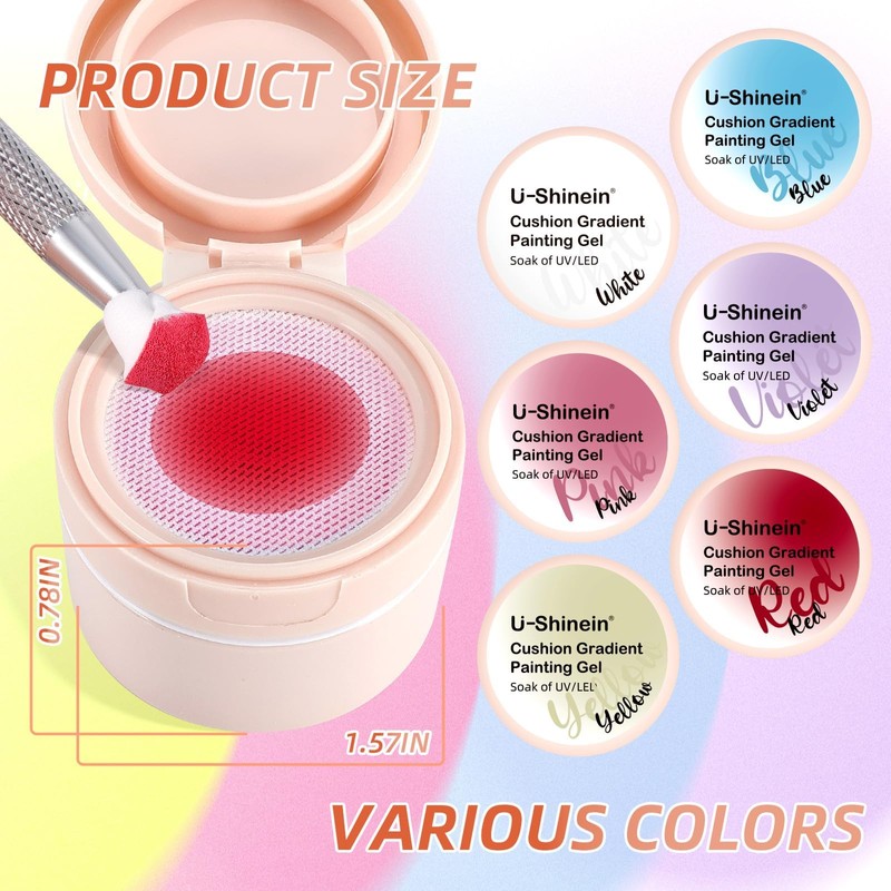 - New Upgrade: Still worried that you have to dip too much into the gel each time and therefore can't spread it on your nails? Our new Air Cushion Gradient Gel is the perfect solution to this problem. The high quality and fine mesh can control every dip, making your nail art easier.