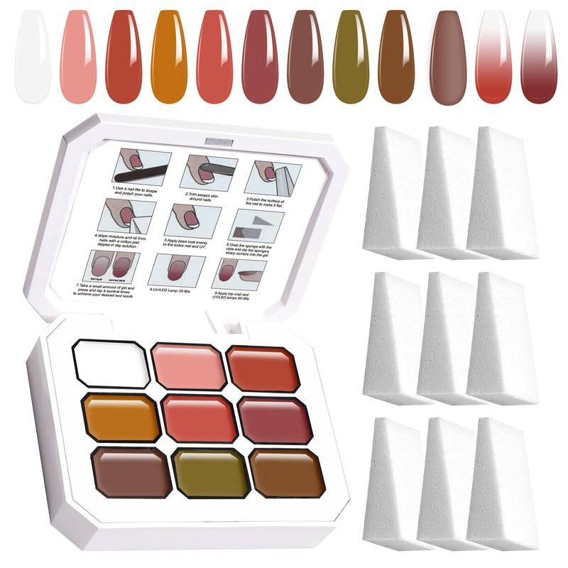 - COLOR KIT: This color mixing gel set gives you everything you need for flawless gradients and more. Contains 9 vibrant gradient gel polishes, 4 large sponges for all your needs.