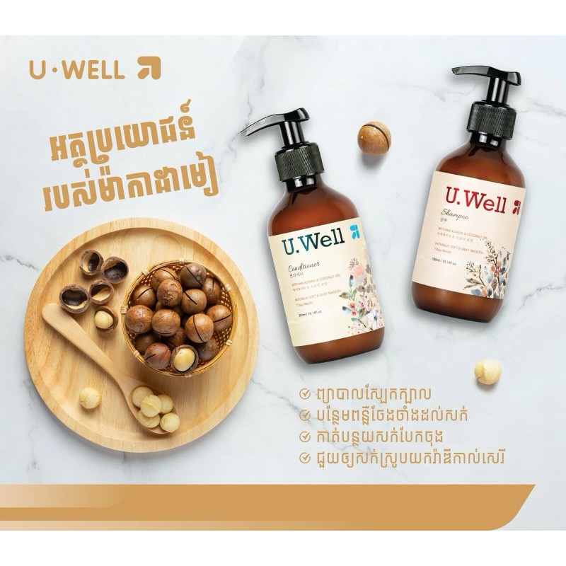 U Well 1 Set U Well Shampoo & Conditioner ឈុតសាប៊ូ យូវែល ឯកទេសព្យាបាលសក