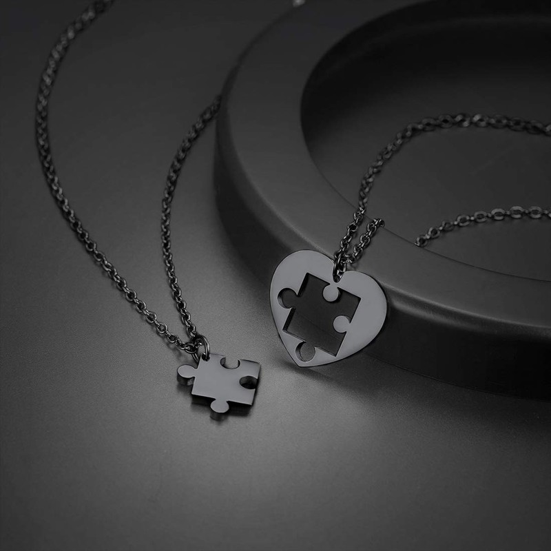 U7 Couple Matching Set Necklace for Boyfriend Girlfriend Black Puzzle Piece Pendant BFF Necklace for 2