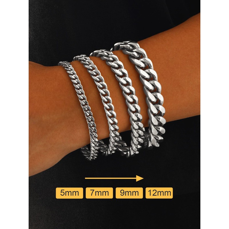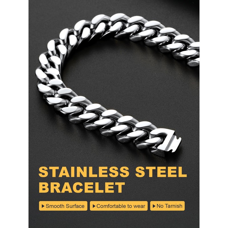 - 【High Quality Material】 Men Cuban Chain is made of 316L stainless steel. High polished surface,comfortable to wear. Hypoallergenic mens bracelet is suitable for sensitive skin ,lead free and nickel free.