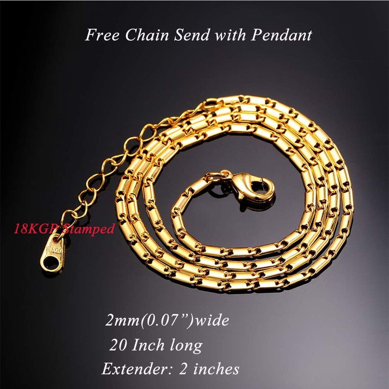 - Dimension--- Pendant 1.2 inches, chain is flat link chain 20 inches long, with extra 2 inches extender. Sturdy Lobster claw clasp.